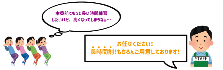 | 1名様プラン 直前予約少人数割(個人練習) | ||||