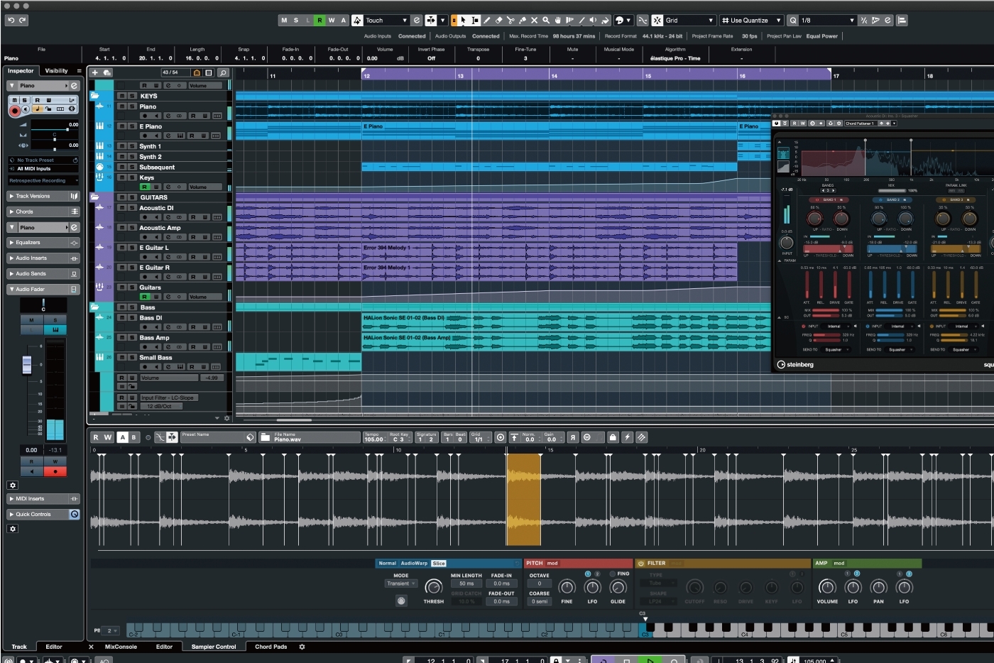 適度にコンプレッサーをかけることで、録音中の音量のばらつきを抑え、均一なサウンドを保つことができます